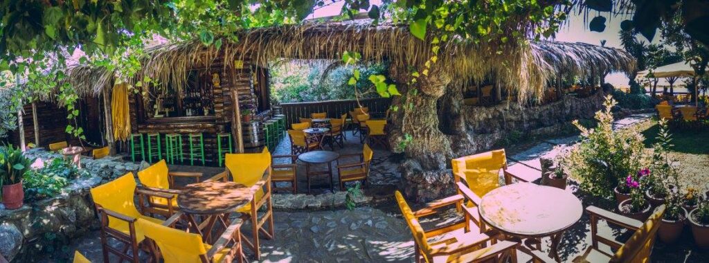 Σήμερα λειτουργεί ως beach bar, σε ειδυλλιακό περιβάλλον πρασίνου, με δένδρα, φοίνικες, γκαζόν, σιντριβάνια, ρυάκια, πέργκολες και θέα το απέραντο γαλάζιο.
